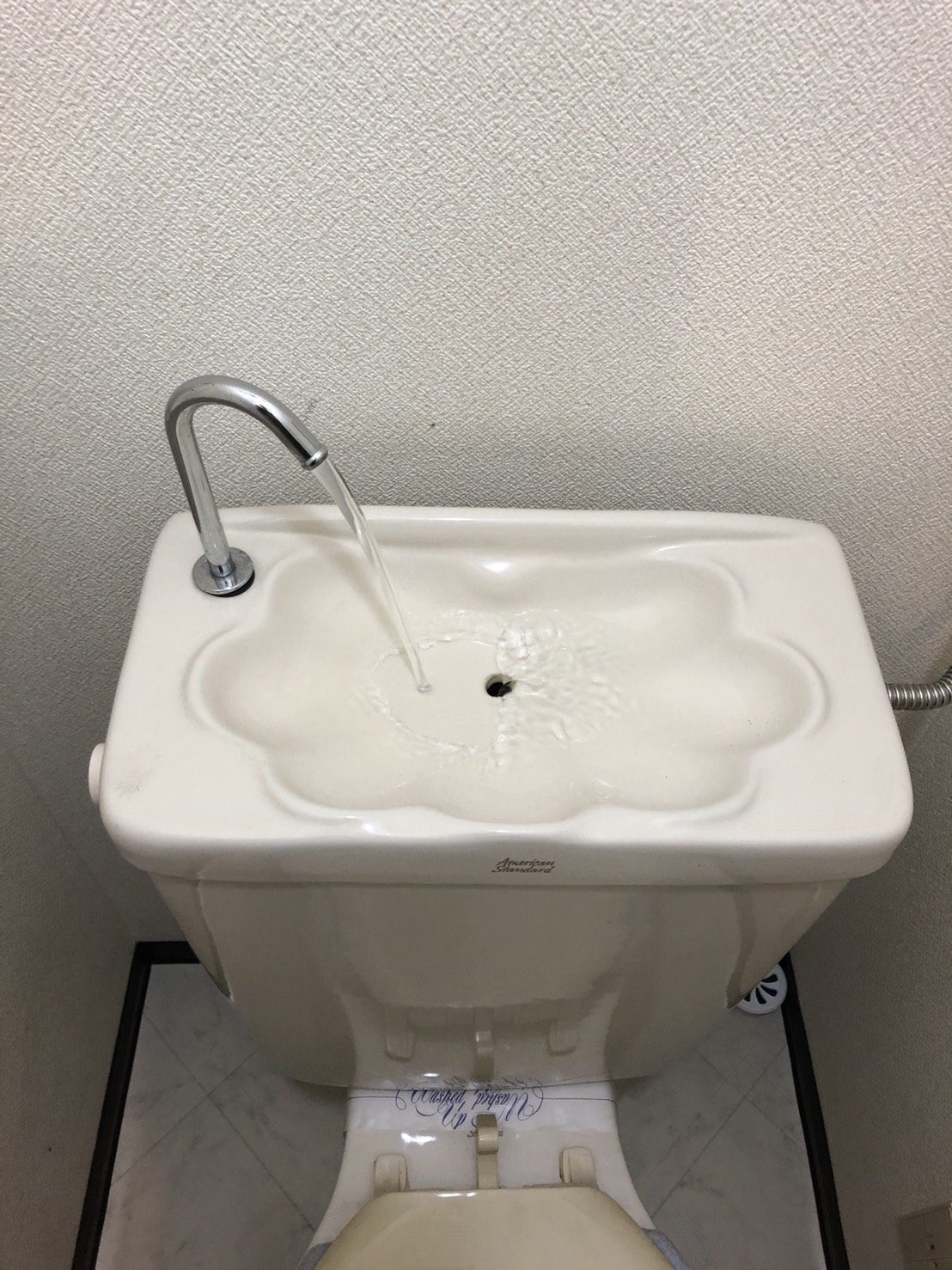 トイレのタンクの蓋を開けて確認した所、トイレの手洗い管に接続するホースがつまっていました。