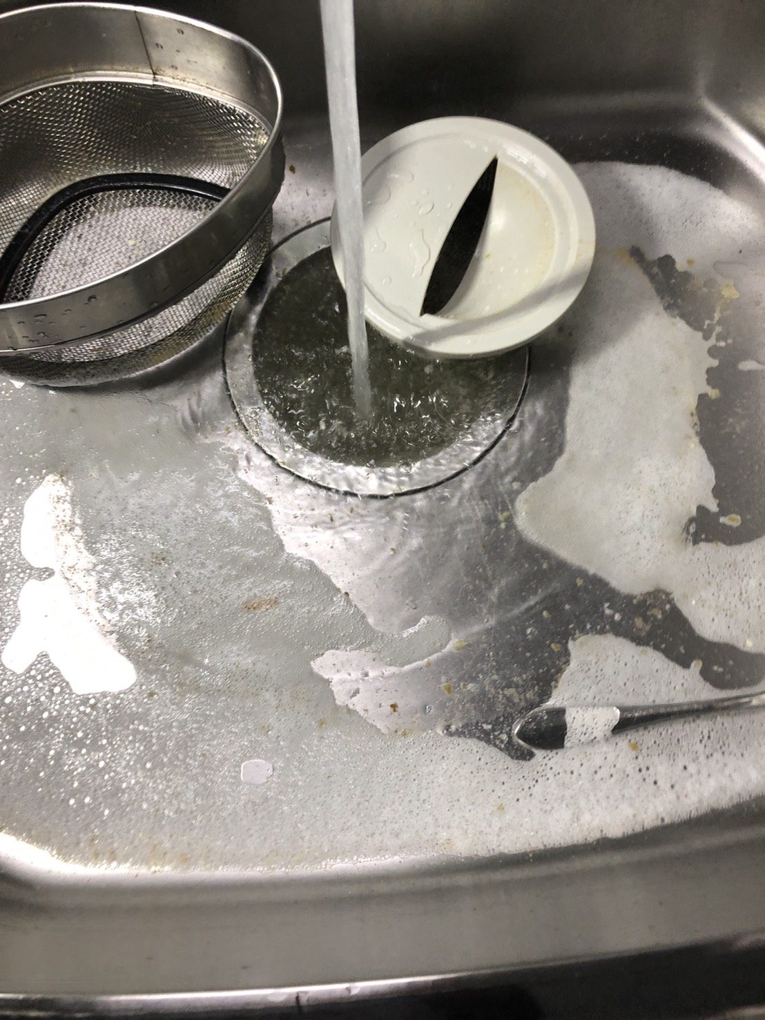 本日は、お客様から台所の水が流れなくて困っていると入電があり即出動しました。