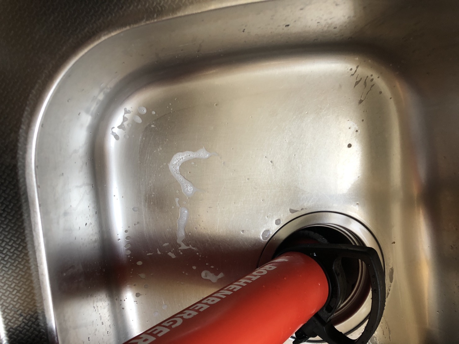本日は、お客様から台所の水が流れなくて困っていると入電があり即出動しました。