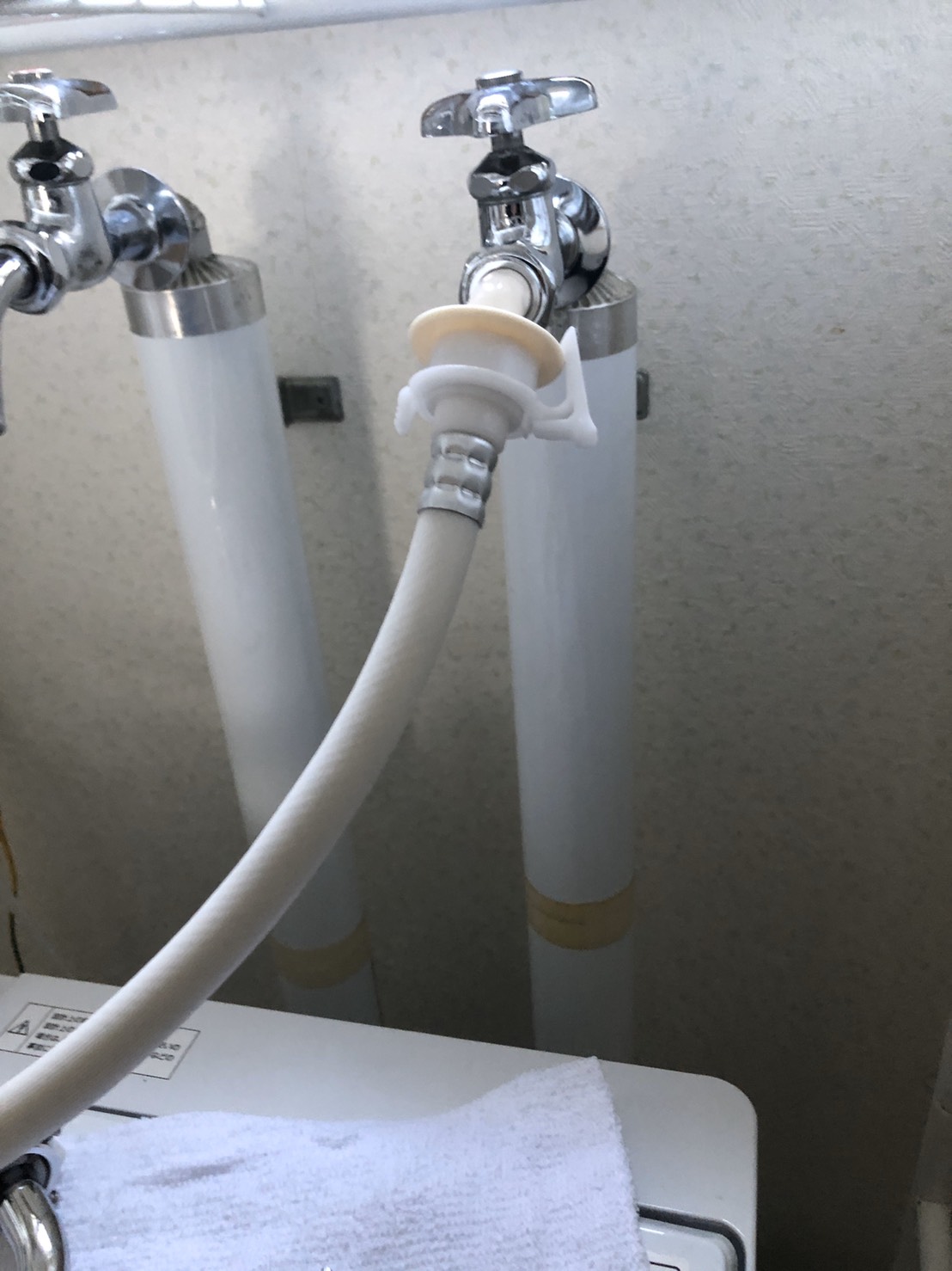 本日は、お客様から洗濯機の蛇口から水漏れしていて困っていると入電があり即出動しました。