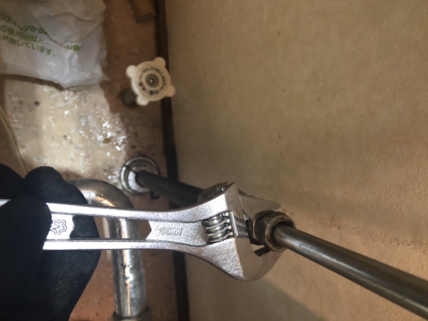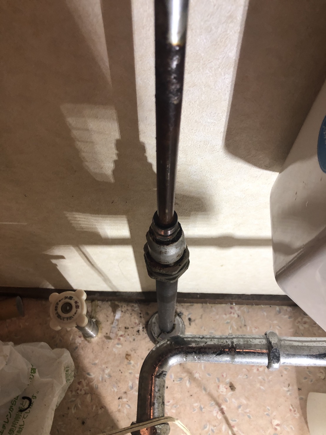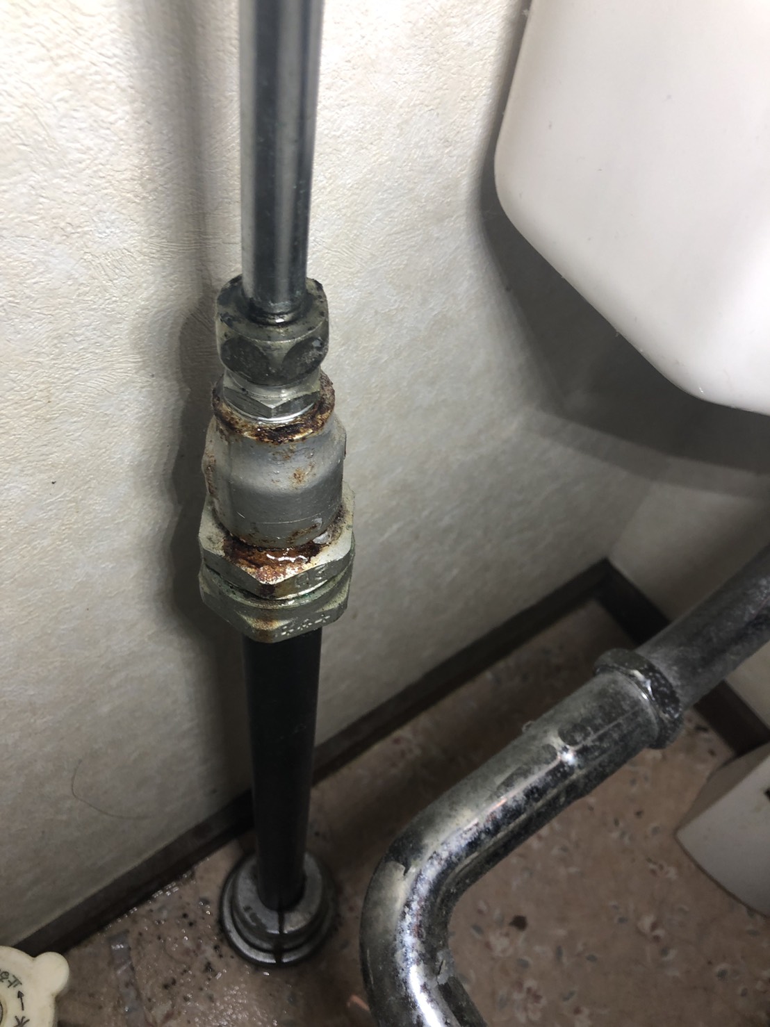 お伺いした所はアパートの一室で、急にトイレの床が水浸しにになってしまったとの事で確認してみると、トイレの給水管のナット部から水漏れしているのがわかりお見積りを事前にご提示しご納得いただき作業を行いました。