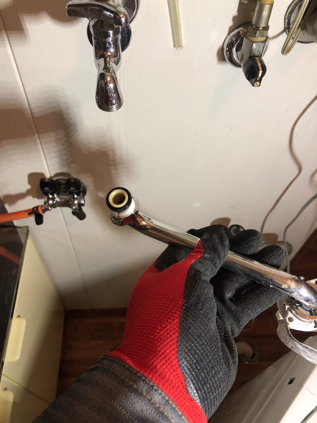 お伺いした所はアパートの一室で本日までは問題なく使用できていたのですが急に水が漏れてきてしまったとの事でした。