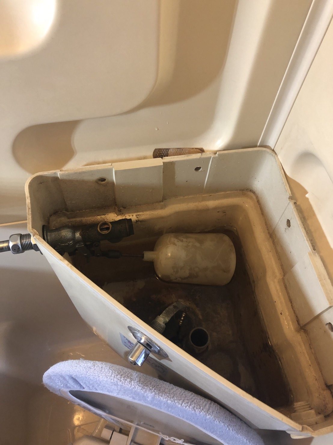 トイレのタンクの蓋を開けて確認した所、トイレの手洗い管に接続するホースがつまっていました。